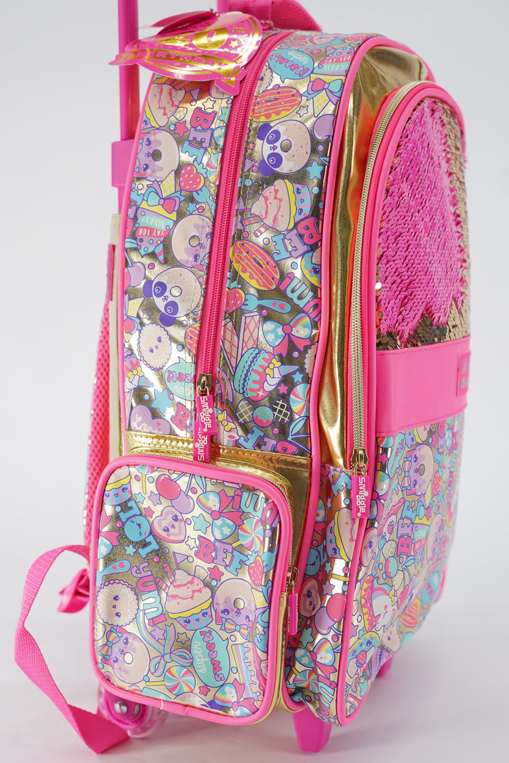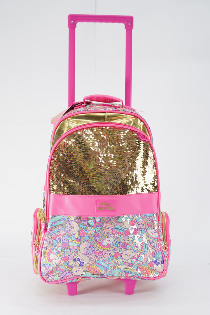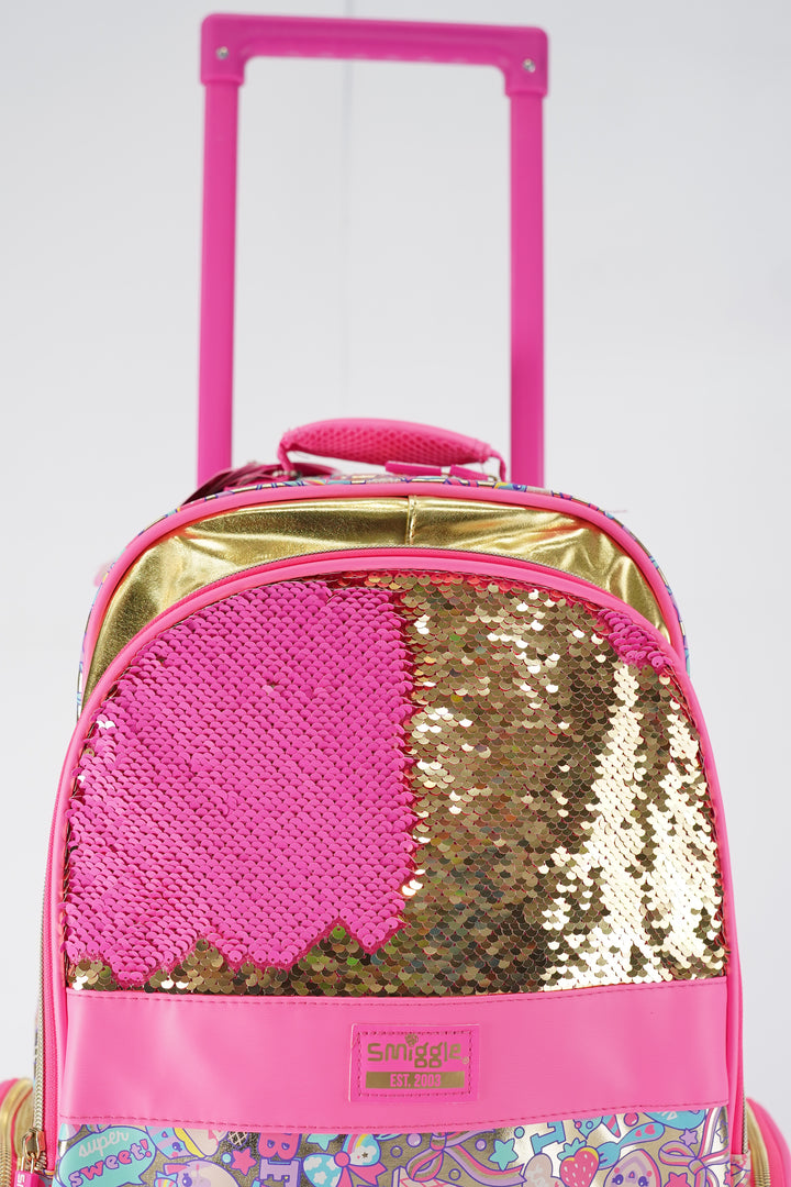 Original Smiggles 20 Inch Flashy Sequin Trolly School Bag Original for Grade 1 Till Grade 5 Girls