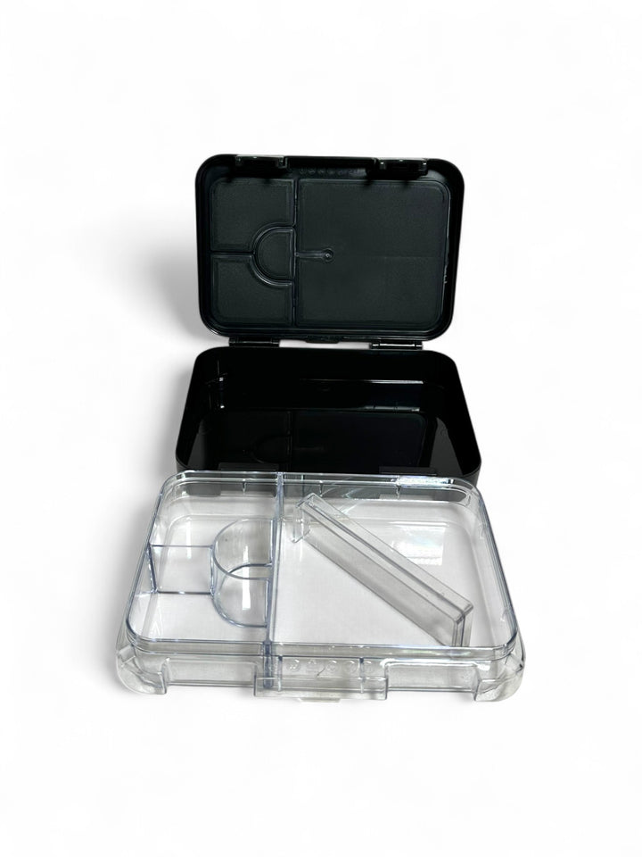 - Removable divider that provides additional sub-compartments (not leak proof)