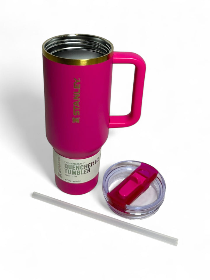 This Stanley Flowstate Tumbler flip straw 1.18L is Crafted from 18.8 stainless steel and boasting a BPA-free design, this tumbler features a double wall vacuum insulator and a 3-position lid for maximum performance. Enjoy a splash-proof design, a reusable straw, and a dishwasher safe cap for easy cleaning. Plus, its cap cut holder is compatible with most cup holders, making it perfect for on-the-go use. Elevate your beverage experience with the Stanley Flowstate Tumbler flip straw 1.18L
