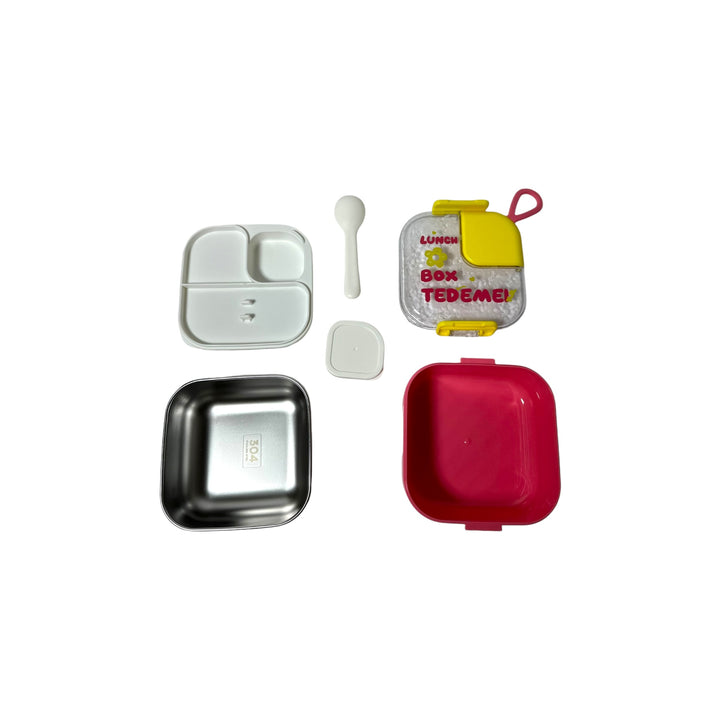 This TEDEMEI launch box for kids features durable stainless metal construction, 2 secure side locks, and 1 convenient portions.