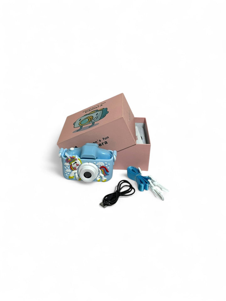This is a Kids Unicorn camera also known as a kids digital camera packaged in a pink box. This type of camera is designed for kids, often featuring a durable build, simple controls The camera in the image is a child-friendly digital camera. Search results suggest it might have features like HD photography and video