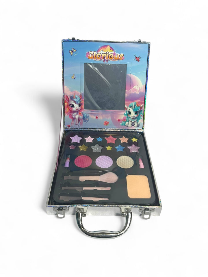 This unicorn cosmetic kit is a perfect gift for little girls fun plat activity & educational this set include Eyeshadow, Eyeshadow with glitter Nail Polish, Brush, Lipstick, Lip Gloss