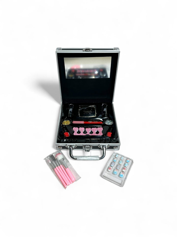 This Make up kit is a delightful set complete with everything your little fashionista needs to indulge in the world of beauty and glamour! Whether she's getting ready for an occasion or simply playing dress-up with friends, this set is sure to inspire hours of imaginative fun and excitement Encourage grooming habits and inspire imaginative play This makeup set is perfect for any little fashionista The cart also makes for easy cleanup and storage after playtime, keeping the toys organized and ready for the next time your child wants to play makeup games.